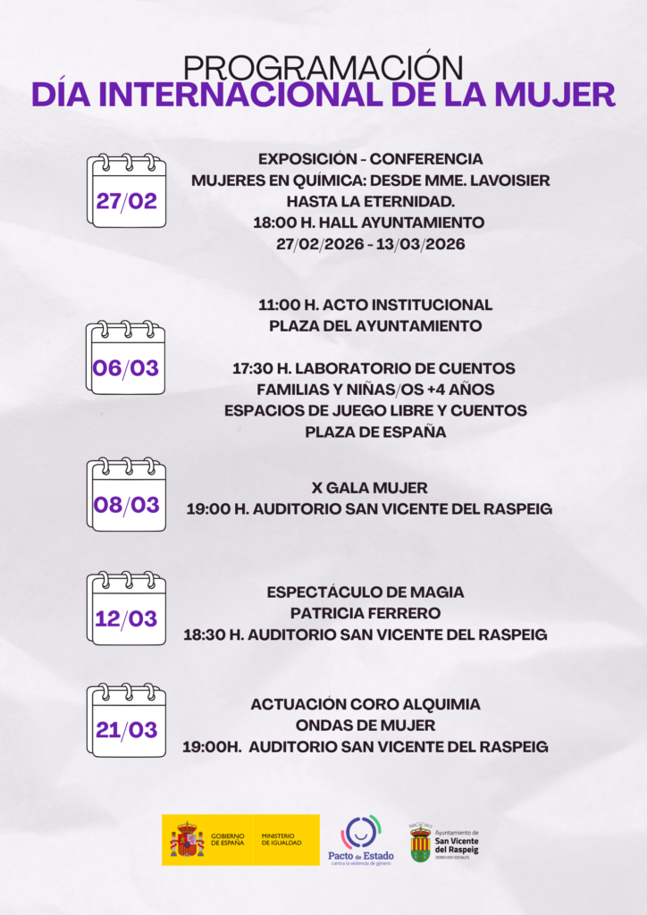 Los referidos galardones, tienen por objeto visibilizar el papel de la mujer y su contribución a la sociedad Sanvicentera en las diferentes áreas y entramado social del Municipio y se entregarán en la Gala que se celebrará el próximo día 8 de marzo, Día Internacional de la Mujer 2026, en el Auditorio Municipal.